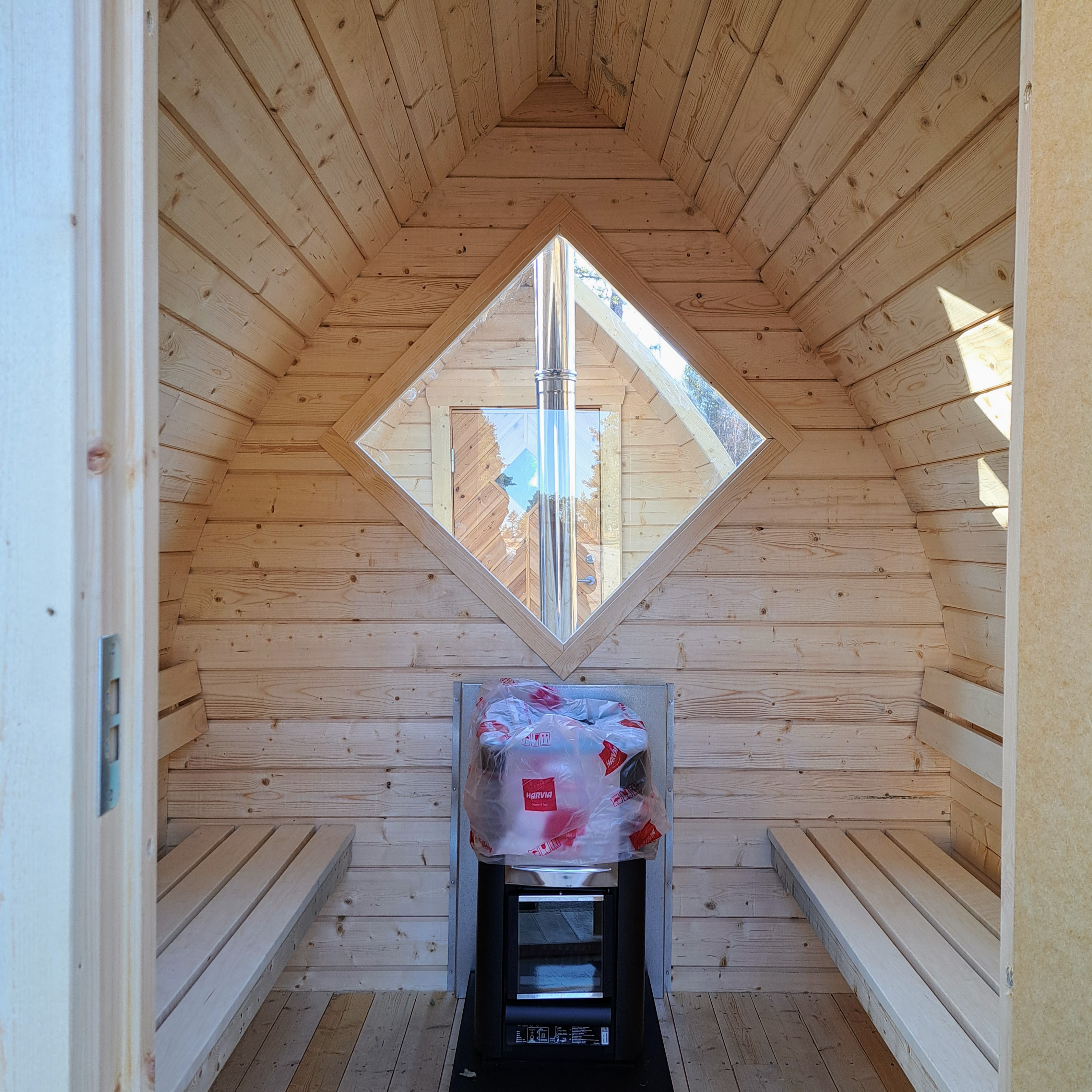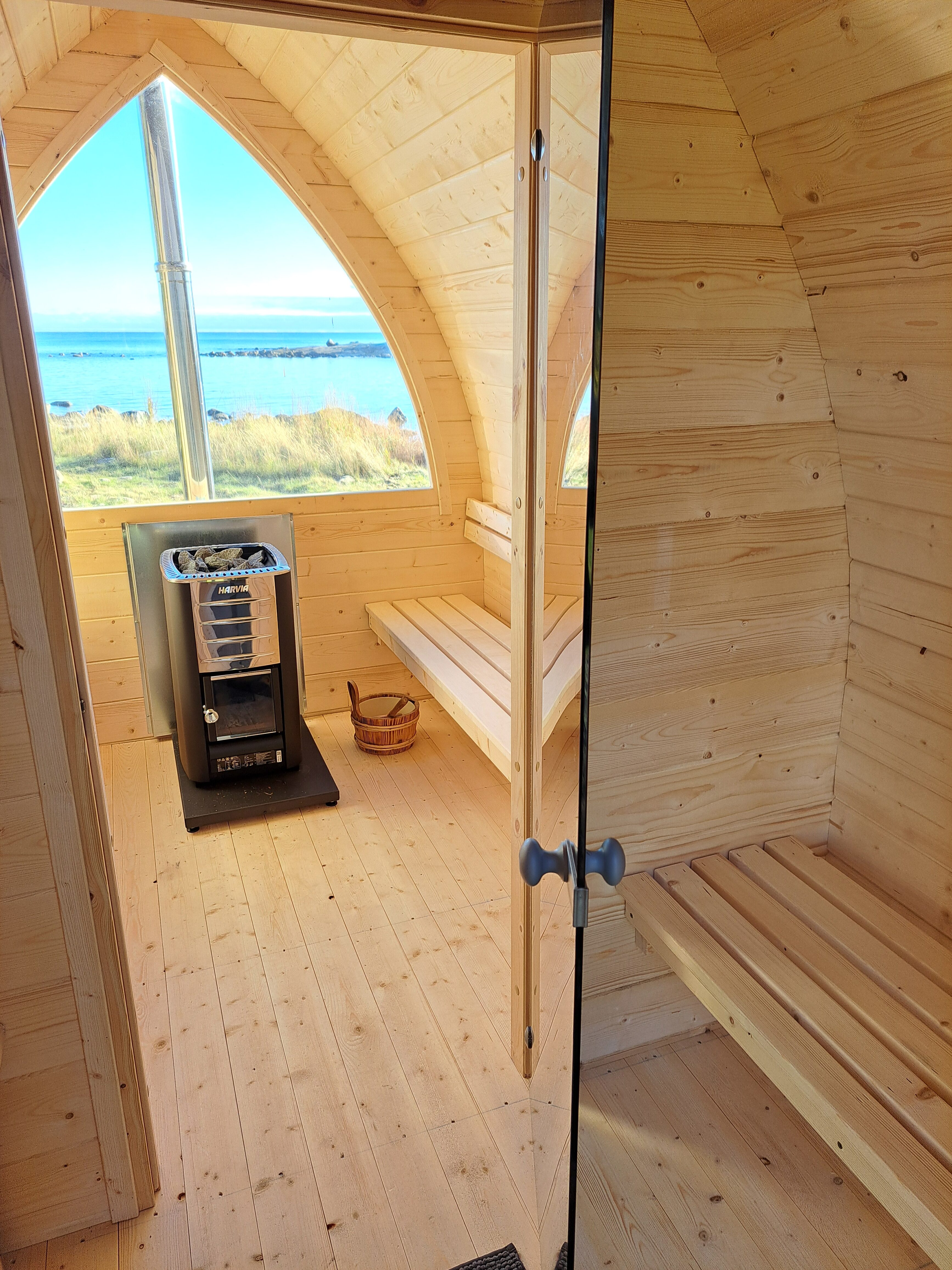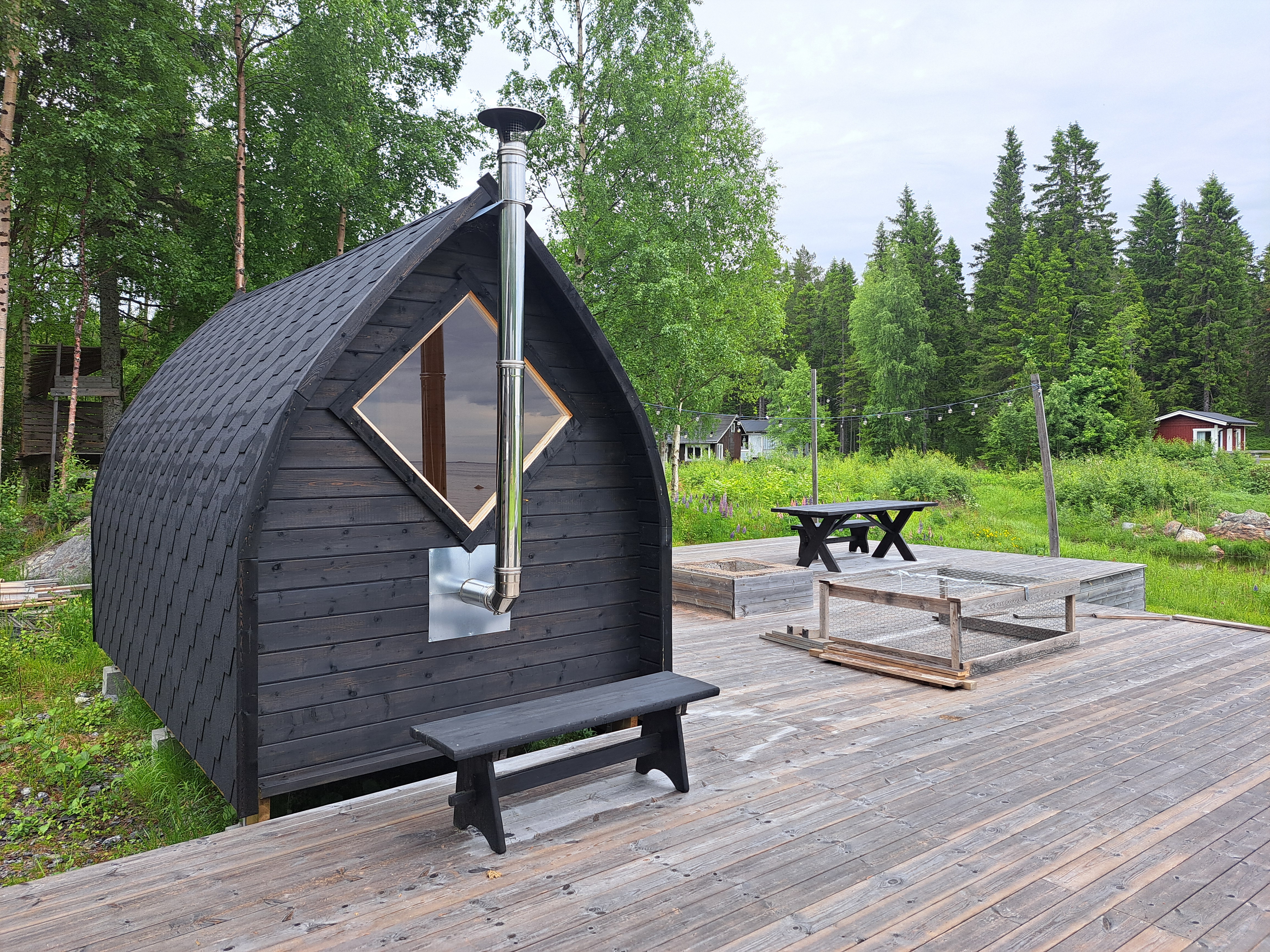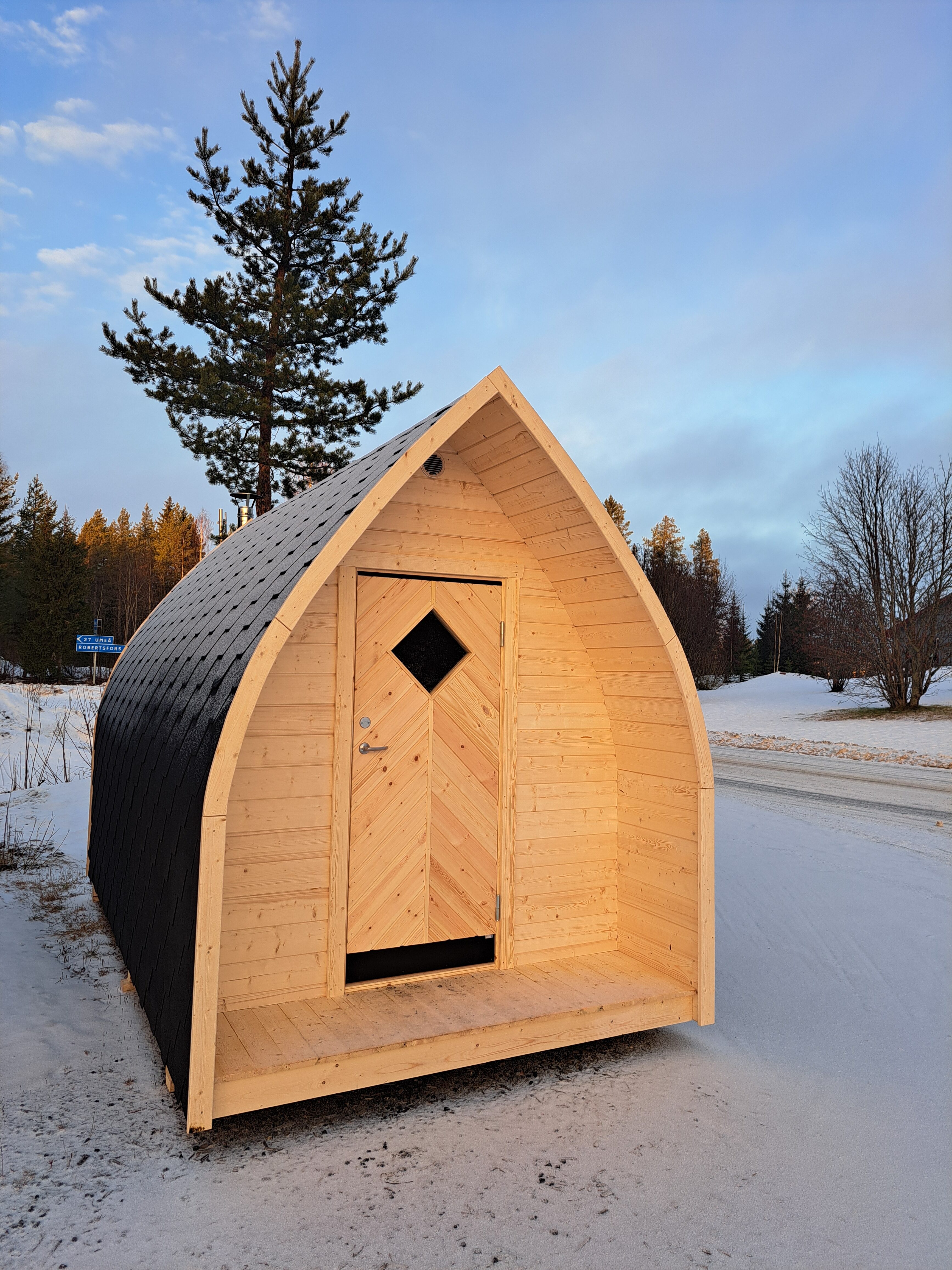 Lämpligt för dig som tänker placera bastun nära andra byggnader. - Formskuren design på fönster